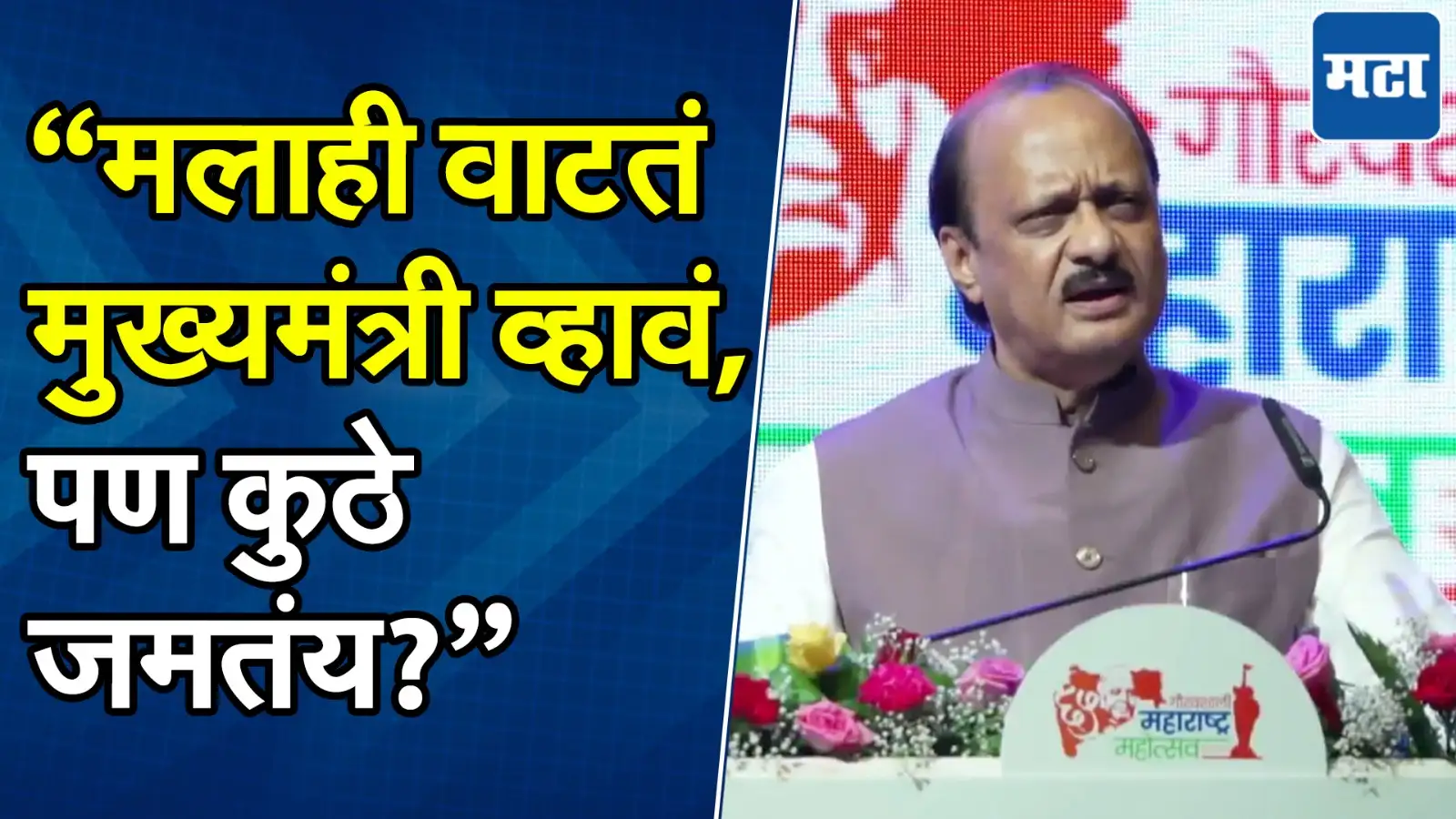 राष्ट्रवादी काँग्रेसकडून गौरवशाली महाराष्ट्र महोत्सवाचे आयोजिन करण्यात आले आहे. या कार्यक्रमाचा आज (२ मे) दुसरा दिवस असून अजित पवारांनी हजेरी लावली.यावेळी अनेक प्रसिद्ध महिला अभिनेत्री, गायिका, खेळाडू उपस्थित होत्या.कार्यक्रमात बोलताना अजित पवारांनी मुख्यमंत्री पदाची इच्छा व्यक्त केली.मलाही वाटतं मुख्यमंत्री व्हावं, कधीतरी योग येईल, असे ते म्हणाले.